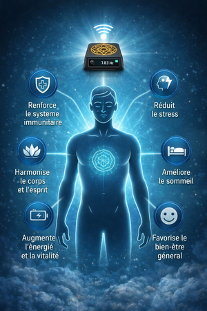 La résonance de nos Box, et la symboléomorphique permet par effets de radioniqu de favoriser un “réglage naturel” pour le corps humain, contribuant ainsi à préserver un équilibre biologique. Dans le but de faire barrière aux parasitages et aux perturbations causés par la pollution électromagnétique (ondes artificielles). Des ondes qui ont des effets néfastes sur la santé, engendrant notamment des troubles du sommeil, de l’anxiété et des déséquilibres hormonaux.